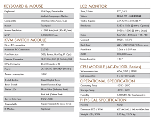 • LCD KVM console with an 17” LED-backlit 4:3 LCD monitor in a single rail design.