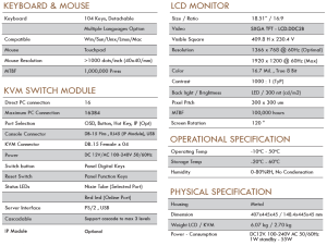 • Dual Rail design – Keyboard and Touchpad rail can be pushed back for space saving and using LCD screen for monitoring server information.