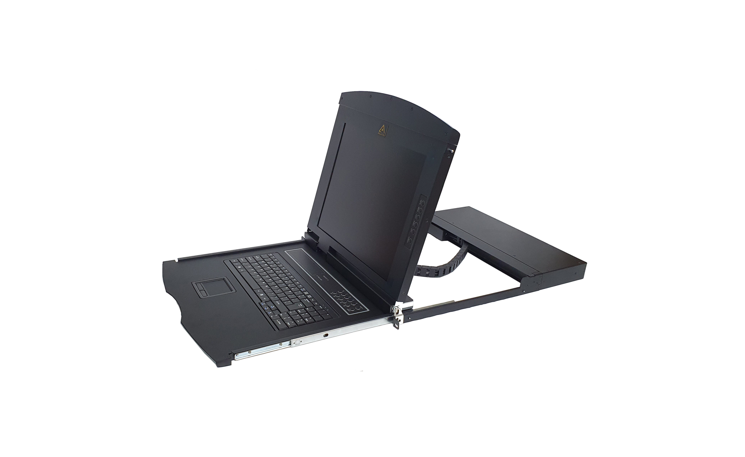 - Integrating a 17” LED screen, keyboard and mouse pad in a 1U rackmountable sliding housing. The compact design console is ultilized for extreme narrow space and super densed area. The AL-V700P can be installed and connected directly to server for convenience configuration. Compatible with Angustos or other brand KVM Switch unit without any difficulties.