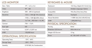 1U rack mount 19″ LED KVM console with touch pad+Mouse – AL-V900P