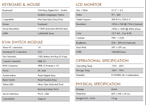 1U rack mount 21.5″ LED KVM switch 16 ports HDB-15 with touch pad+Mouse – AL-V2116P