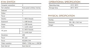 • No power adapter needed – KVM Switch unit use USB Power.