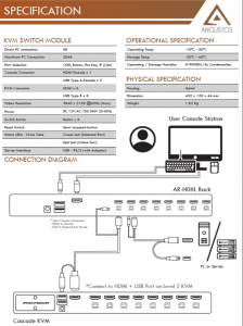 - The short-depth design ultilized for narrow space for short-rack mounting in condensed area. The AR-H08L can control up to 08 computers; with 128 additional KVM switches are cascaded on two more level, a single AR-H08L KVM Switch can control up to 2048 computers.