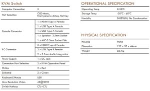 • SingleUSB console control 2 HDMI interface computer and two additional USB device;